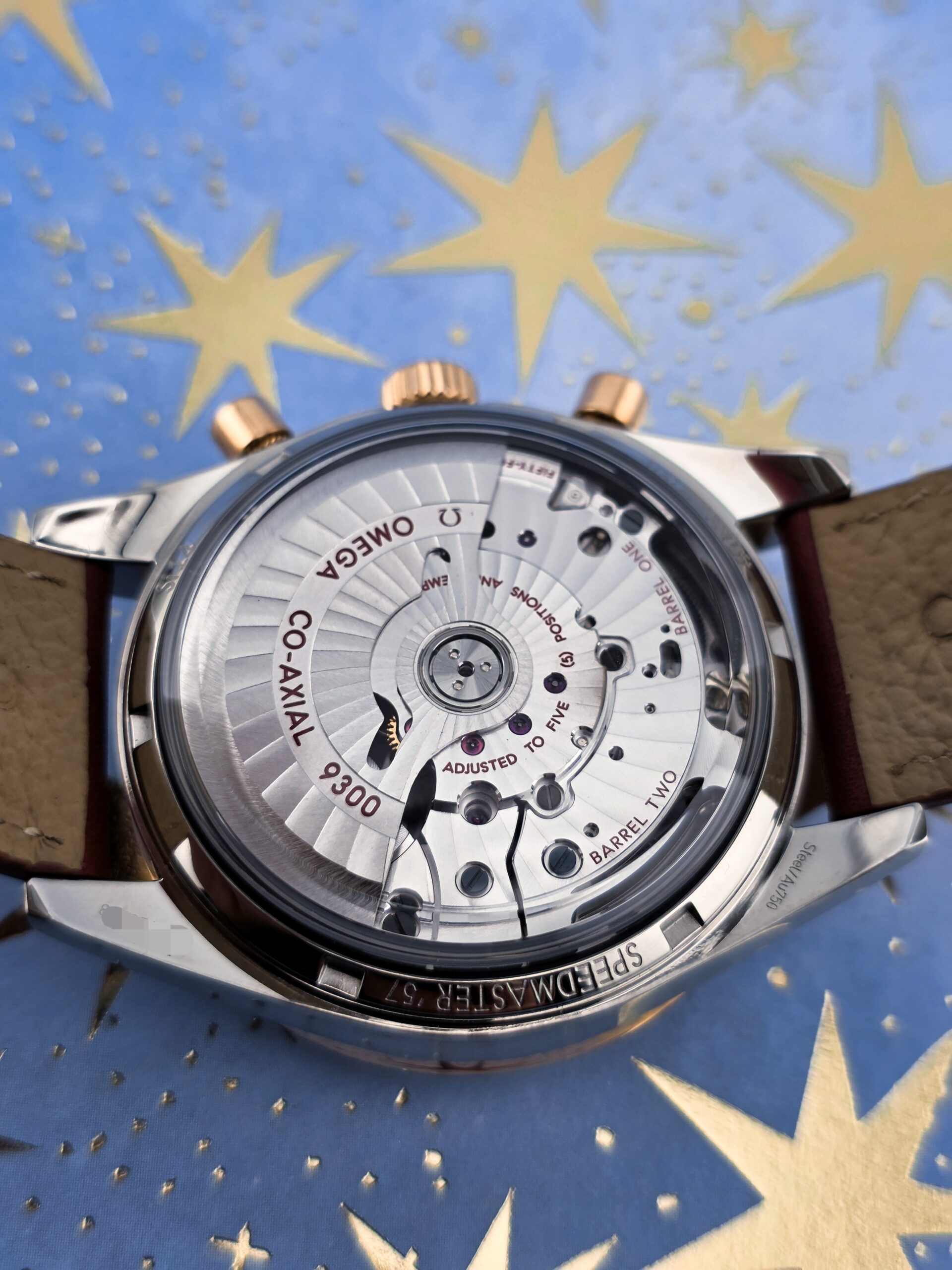 | Movement | Omega Co-Axial Caliber 9300, column-wheel chronograph |