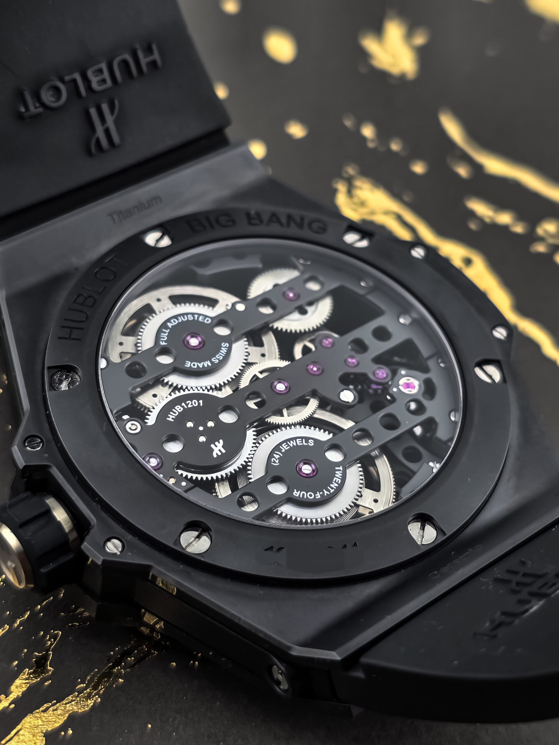 | Movement | Hublot Manufacture Calibre HUB1201, manual-winding skeleton movement |