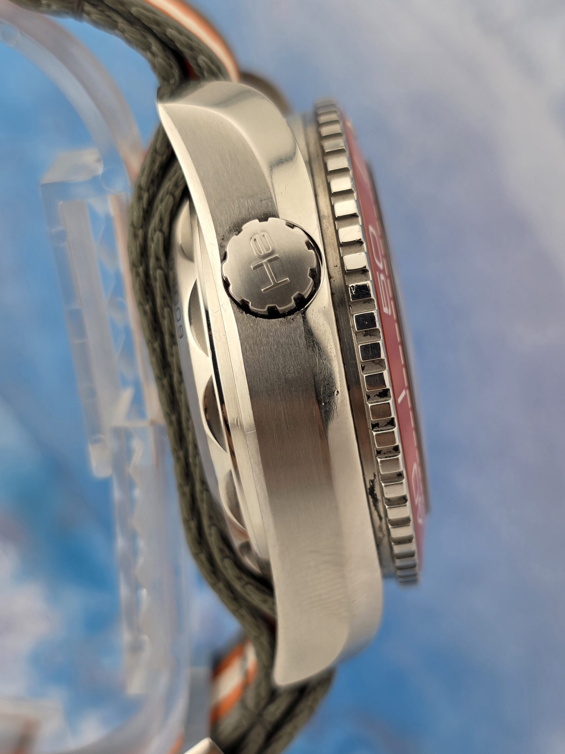 - NATO Strap: Excellent – orange, grey, and white NATO strap in great condition