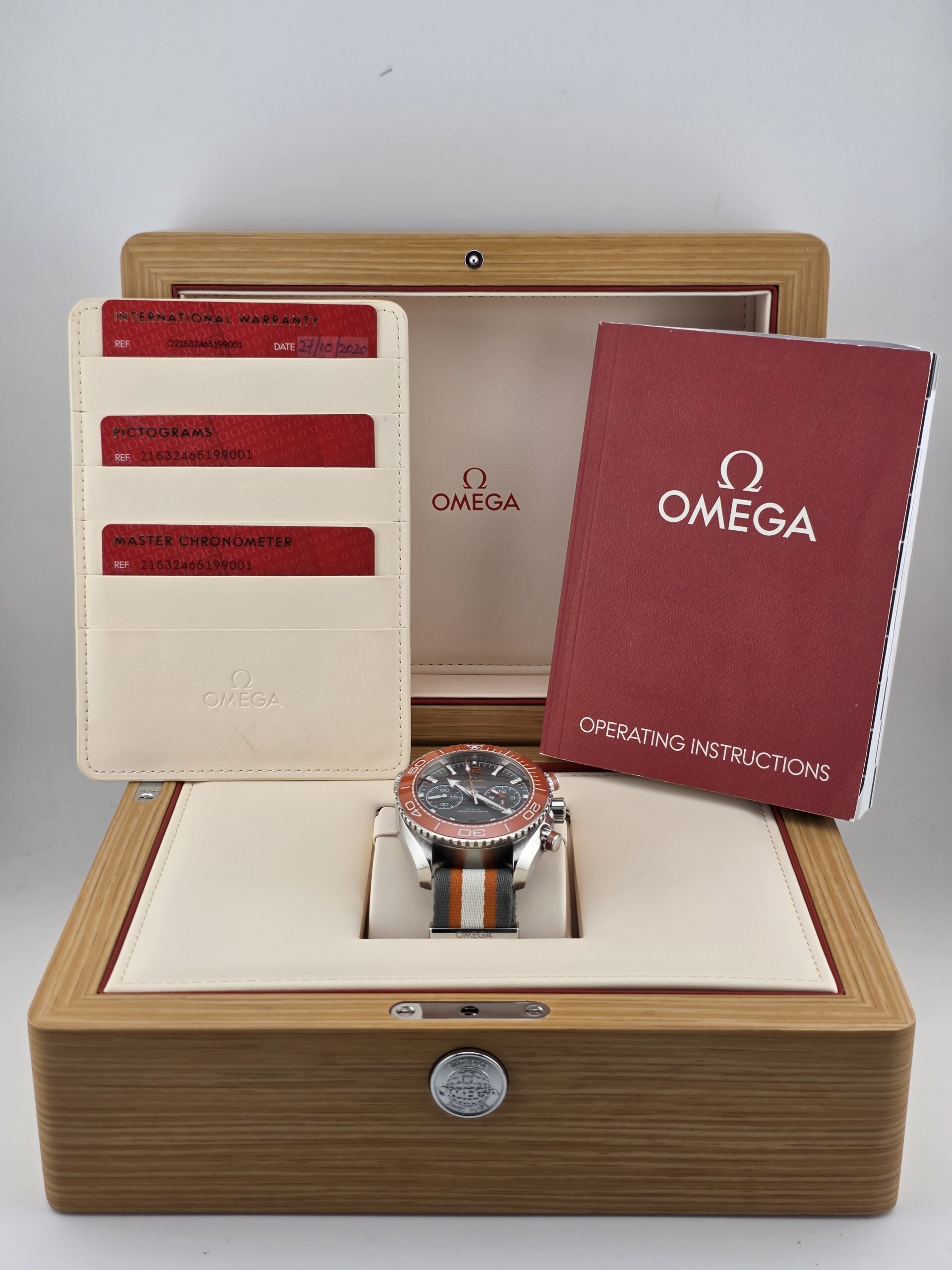 - All three original cards (warranty card, pictogram card, Master Chronometer card)