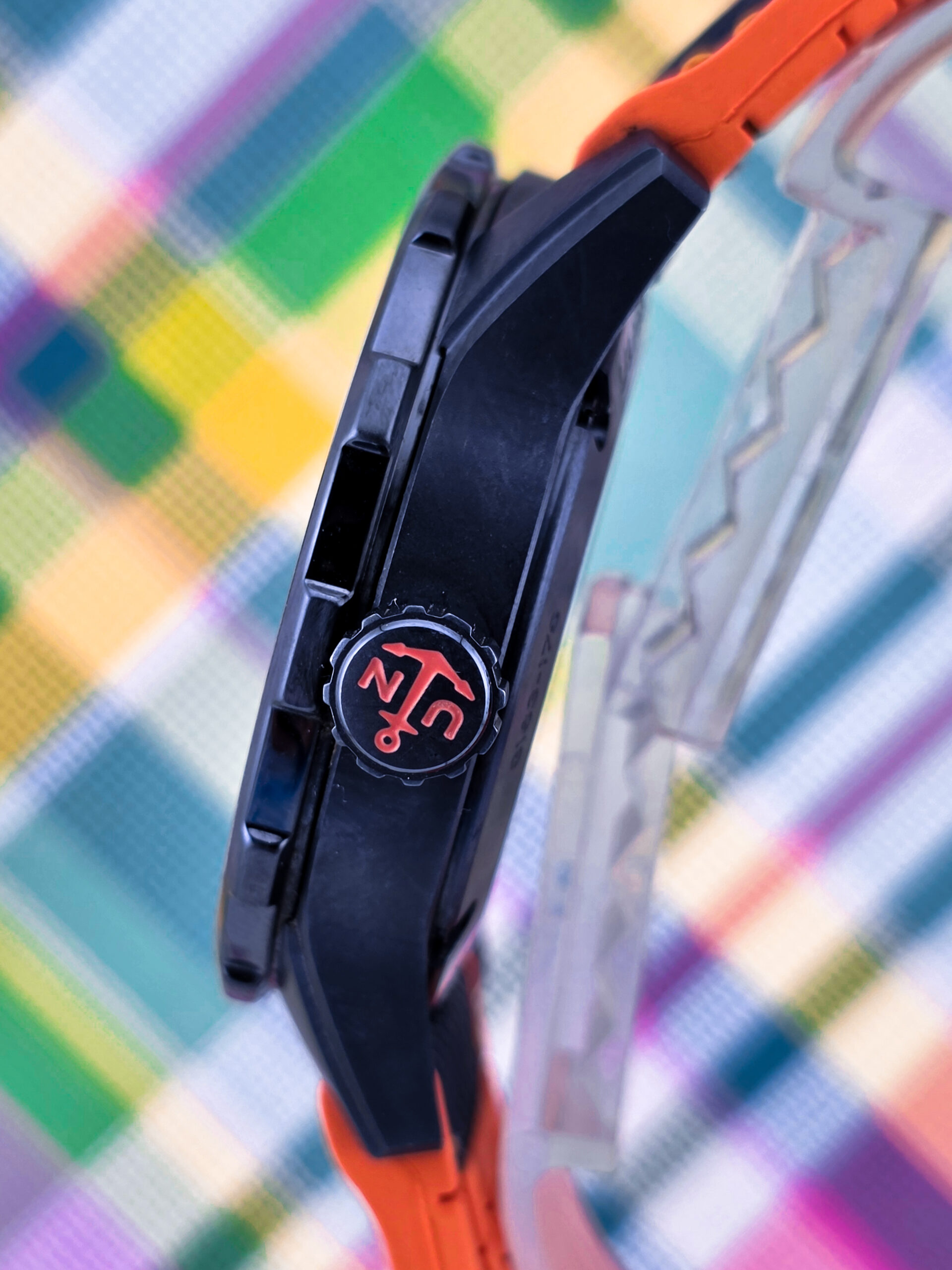 | Case | 42mm blue PVD-coated stainless steel with orange accents |